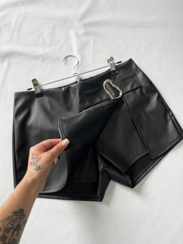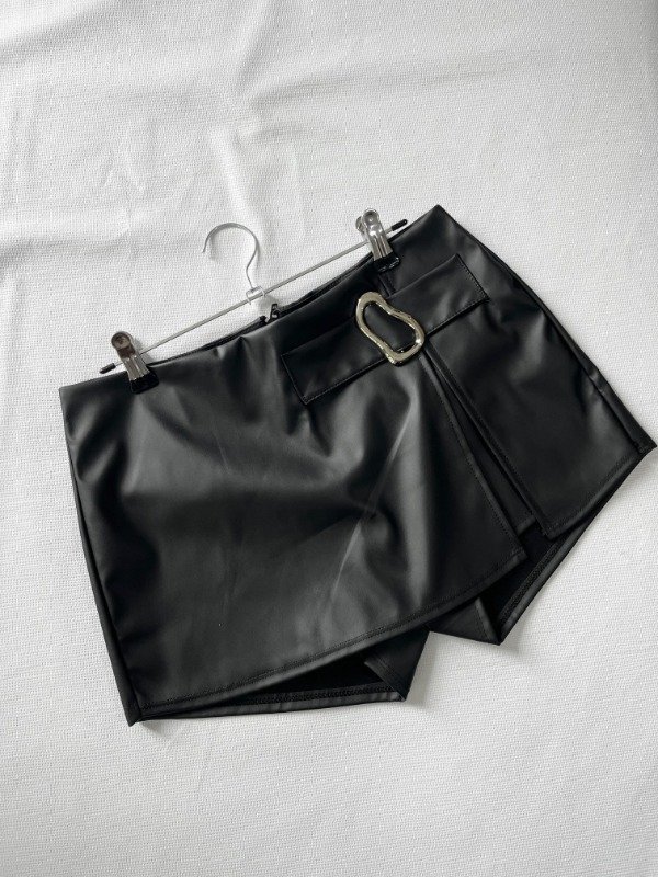 • Short pollera de eco cuero con detalle de hebilla y cierre trasero