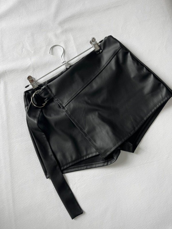 • Short poller de eco cuero con detalle de aro lateral y cierre trasero