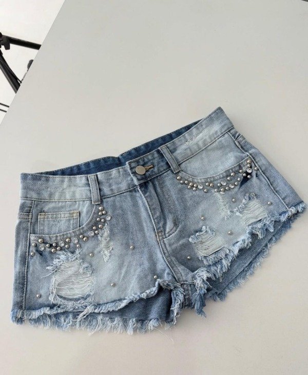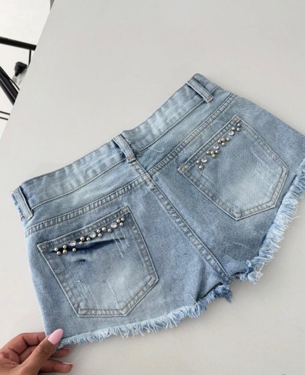 • Short de jean tiro medio importado con tachas y roturas