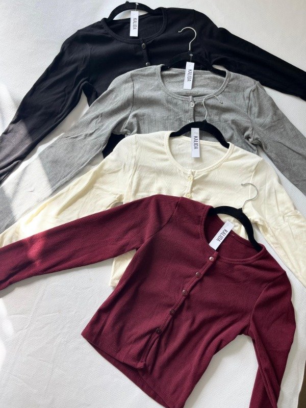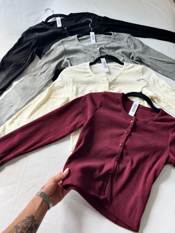 • Remera Manga larga de lanilla frizada con botones delanteros