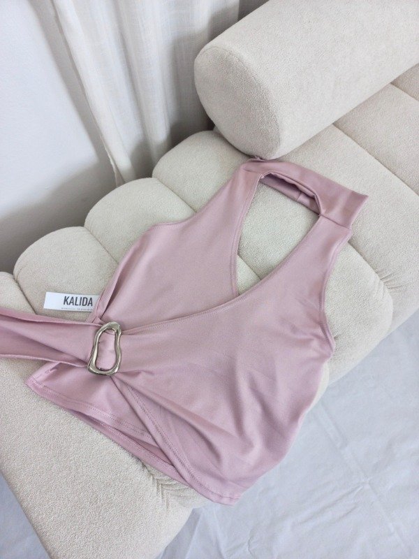 • Top de microfibra con cuello y detalle de hebilla